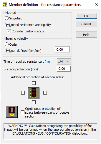 - Дополнительная защита сторон сечения (должны отображаться стороны сечения, которым необходима такая защита)