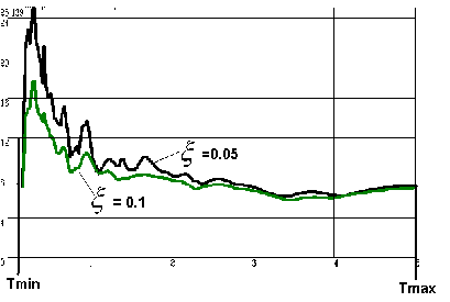 Tp - зарегистрированная продолжительность землетрясения, ω = 2p/T - пульсация для T О [Tmin, Tmax], - параметр демпфирования (выраженный в процентах к величине критического демпфирования), F(t) – заданная схема ускорения.