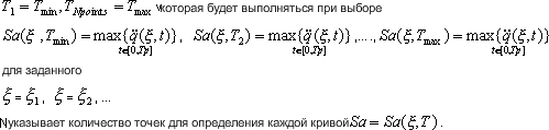 Раздел помощи обсуждает метод определения спектра отклика Sa=Sa(T) для заданной схемы ускорений F(t), где T - период, Sa - спектр ускорений, t - время, аргумент функции ускорений.