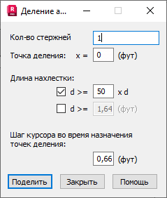 - "Точка деления x": указание координаты точки деления одного или нескольких арматурных стержней;