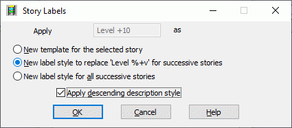 - Новый стиль меток для всех рассматриваемых этажей - имя выбранного этажа будет использовано как шаблон для всех этажей, которые были определены после выбранного этажа; имена всех последующих этажей будут изменяться;