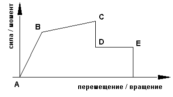 Имя модели содержит имя активной модели шарнира. Точки графика сила-перемещение или момент-поворот могут быть определены или изменены в таблице. Координаты следующих точек должны определяться одна за другой: E (-) D (-), C (-), b (-), A, B, C, D, E. Рисунок внизу показывает положительную часть графика.