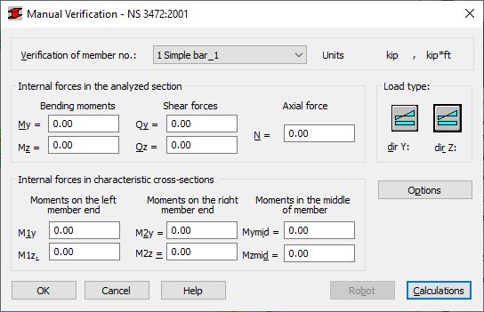 Прим.: При расчетах в диалоговом окне Проверка вручную полученные в диалоговом окне Определение элемента внутренние связи не будут учитываться и элемент будет рассматриваться без связей вдоль длины.
