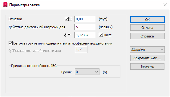 Прим.: Содержимое этого окна зависит от выбранных железобетонных норм. Для других норм внешний вид окна может отличаться от показанного выше.
