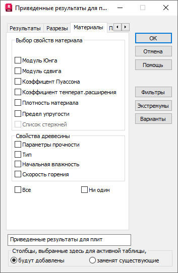 Для выбора свойств материала необходимо выбрать вкладку "Материалы" в диалоговом окне Колоны.