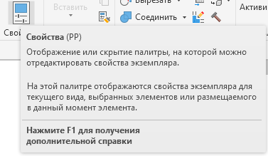 Когда курсор задерживается на инструменте, находящемся на ленте, по умолчанию Revit отображает всплывающую подсказку. Подсказка содержит краткое описание данного инструмента. Если задержать курсор на ленте еще некоторое время, отображается дополнительная информация (если имеется). Во время отображения всплывающей подсказки можно нажать клавишу F1 для отображения контекстной справки, которая предоставляет информацию об этом инструменте в большем объеме.