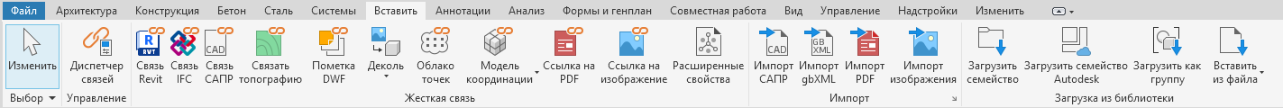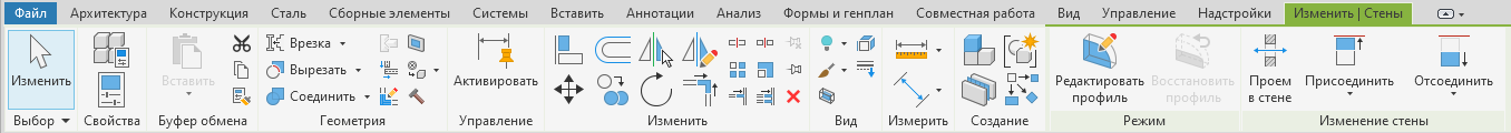 Лента отображается при создании или открытии файла. Она содержит все инструменты, необходимые для создания проекта или семейства.