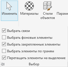 Если возможность выбора закрепленных элементов противоречит возможности выбора других элементов на виде, отключите данную функцию. Например, требуется исключить закрепленные элементы из выбора секущей рамки.