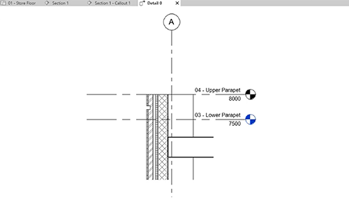 В части 1 учебного пособия начинается работа над проектом и создаются уровни фундамента, этажа магазина, а также нижнего и верхнего парапетов в модели здания.