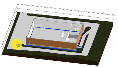 В части 3 учебного пособия с помощью инструмента «Топотело» создайте площадку и добавьте насыпь для основания здания на основе наружных стен модели.
