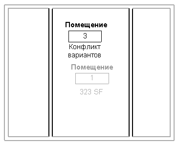 Это сообщение отображается в чертеже при возникновении конфликта между помещениями в главной модели и помещениями во второстепенном варианте конструкции.