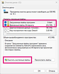 При возникновении проблемы удалите файлы общего кэша и временные файлы Windows и запустите очистку диска для Windows, чтобы удалить временные файлы интернета.