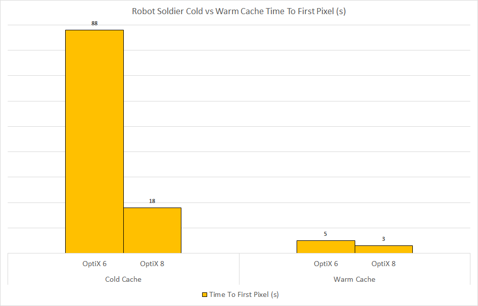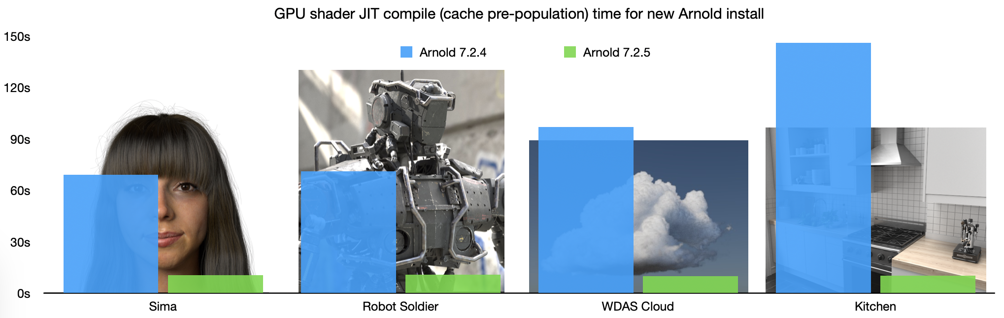 Better GPU startup time: The cold cache pre-population time is up to 14x faster than before. This means that the time to first pixel of the first few renders after an Arnold upgrade will now be significantly faster. This overhead is now low enough that we no longer do a cache pre-population step.