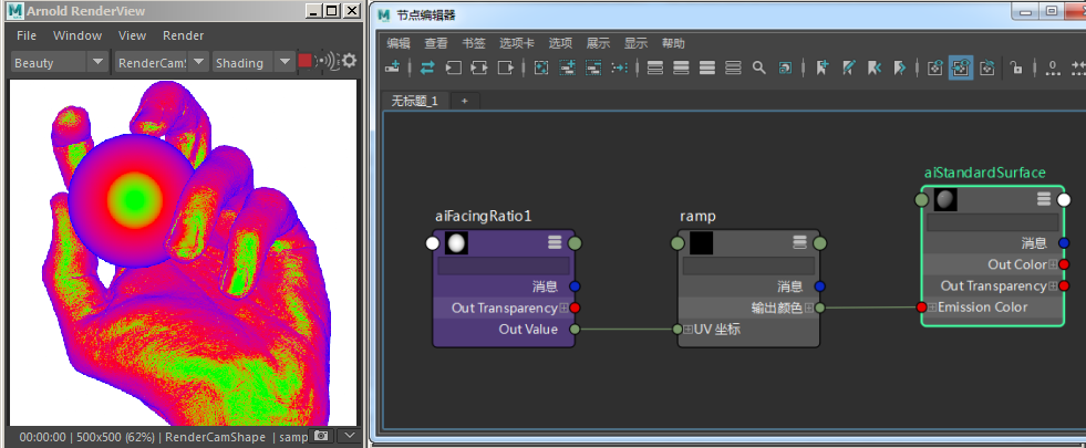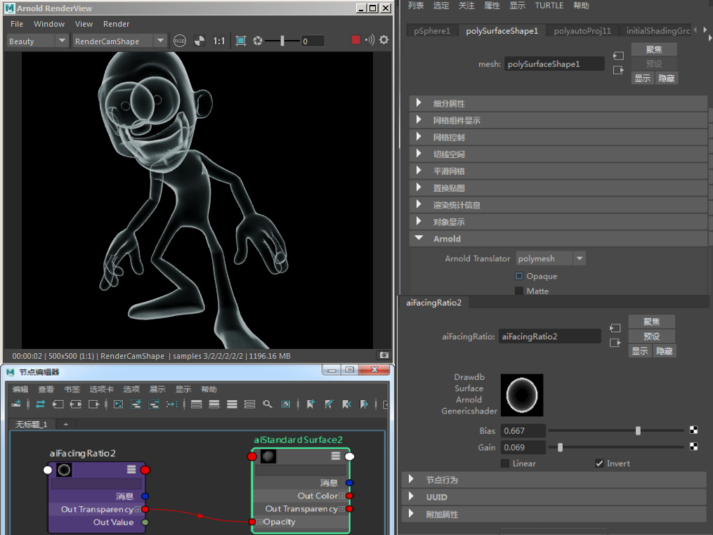 facing ratio 连接到 standard_surface 着色器的 opacity