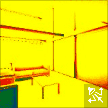 - 亮度单位(包括表示入射勒克斯数量的图例)以伪彩色显示。缩放显示为对数,范围从 0 到场景中所检测到的最大照度。可用控件取决于提供渲染的原始应用程序(例如,Autodesk Revit)。