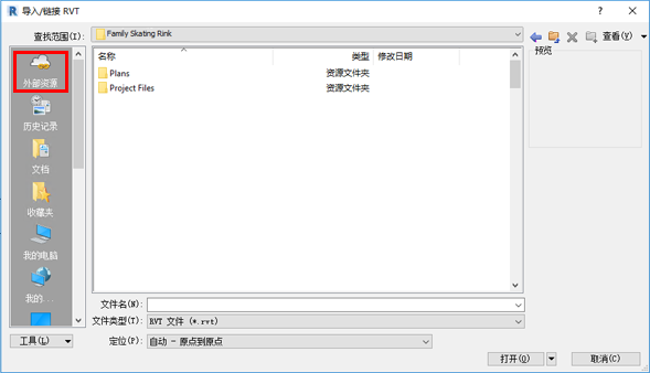 在 Revit 的“插入”选项卡中,单击“链接 Revit”。