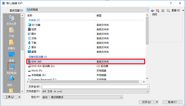 若要在 BIM 360 的非云工作共享的其他 Revit 模型中链接,请执行以下操作: