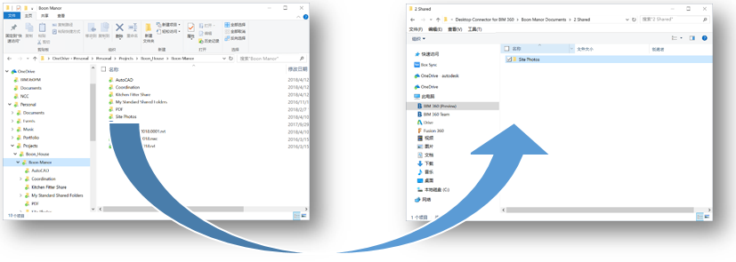 - 将步骤 2 中的文件夹拖放到步骤 4 中的目标位置,即可将文件上载到 BIM 360。