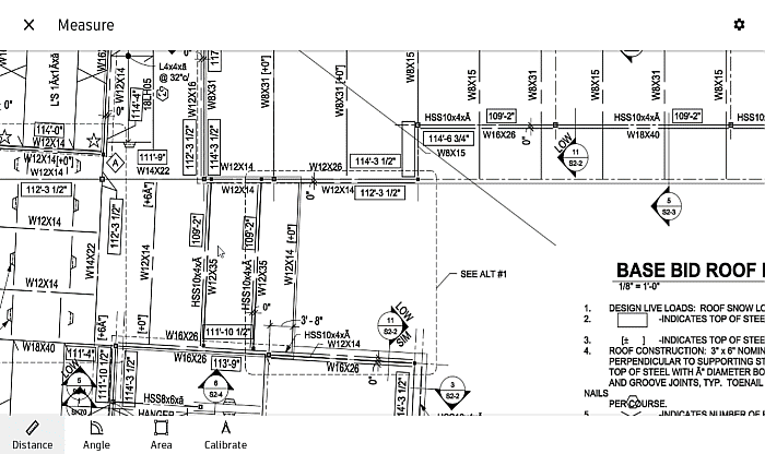 测量二维文档或三维模型中的距离和角度,以及二维文档中的面积。根据您的需要调整测量设置。有关使用 Android 应用程序的“测量”功能的详细信息,请参见 BIM 360 移动功能参考。