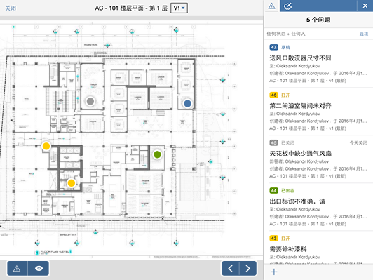 问题。 列表会显示状态、被分配者、创建者、位置和截止日期。点击列表中的问题以将其打开进行编辑。
