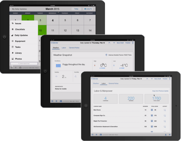 最新版本的 BIM 360 Field 对每日更新报告进行了增强。我们添加了随时间推移的新人工和人力报告,其中包含公司、工人、总工时和公司活动等记录在每日更新模块中的信息。