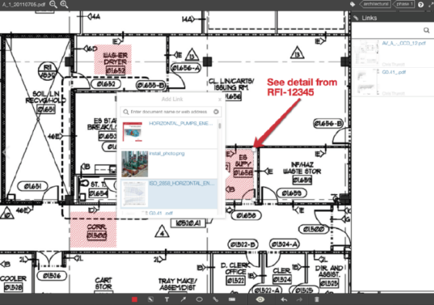 如果您的 PDF 文档已包含 Acrobat® 或 Bluebeam® 的链接,我们将导入这些链接以便在 BIM 360 Field 中使用。
