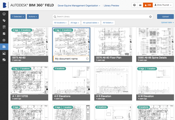 该文档的新版本会保留与旧版本相同的标记和位置链接。为了与以前的操作处理一致,近期文档会显示在库缩略图中、图钉视图以及附件(从库到问题、任务、核对表和设备)中。附件或库中的任何标记都将显示在新版本中。