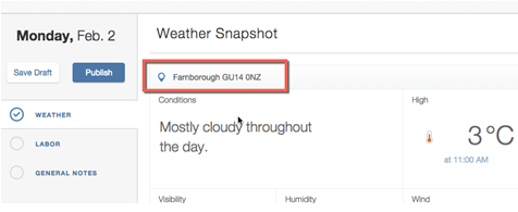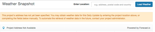 以前,每日更新仅支持美国邮政编码位置的天气信息。现在用户只需输入项目信息区域的邮政编码或者对于那些未输入项目邮政编码信息的项目手动输入邮政编码,即可从任何全球天气位置导入天气。