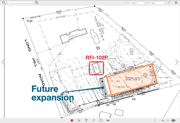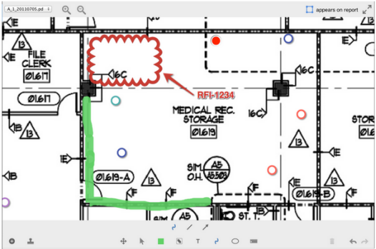 在 BIM 360 Field for Web 中绘制附件时,现在支持与 iPad 和“图钉”视图中相同的绘制工具。绘制窗口变得更大,使工作空间更宽阔。