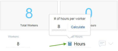在每日更新中,单击计算器图标,然后在弹出窗口中输入工时数并单击“计算”。例如,每个工人为分包商工作 8 小时,并且共有 8 个工人。输入 8 并单击“计算”以在“总工时”字段中输入 64。