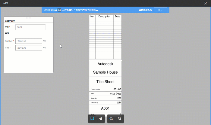 在“标题栏信息”对话框的“字段”区域中,单击每个文本框,导航到要使用的标题栏区域,然后对其进行裁剪。