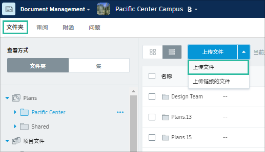 在文件夹树中,选择要在其中上传文件的文件夹。