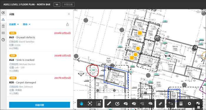 团队使用问题来识别和沟通项目文档或模型需要注意或改进的各个方面。您可以单独在 BIM 360 中处理问题,也可以使用 Navisworks 协调问题附加模块进行协作。