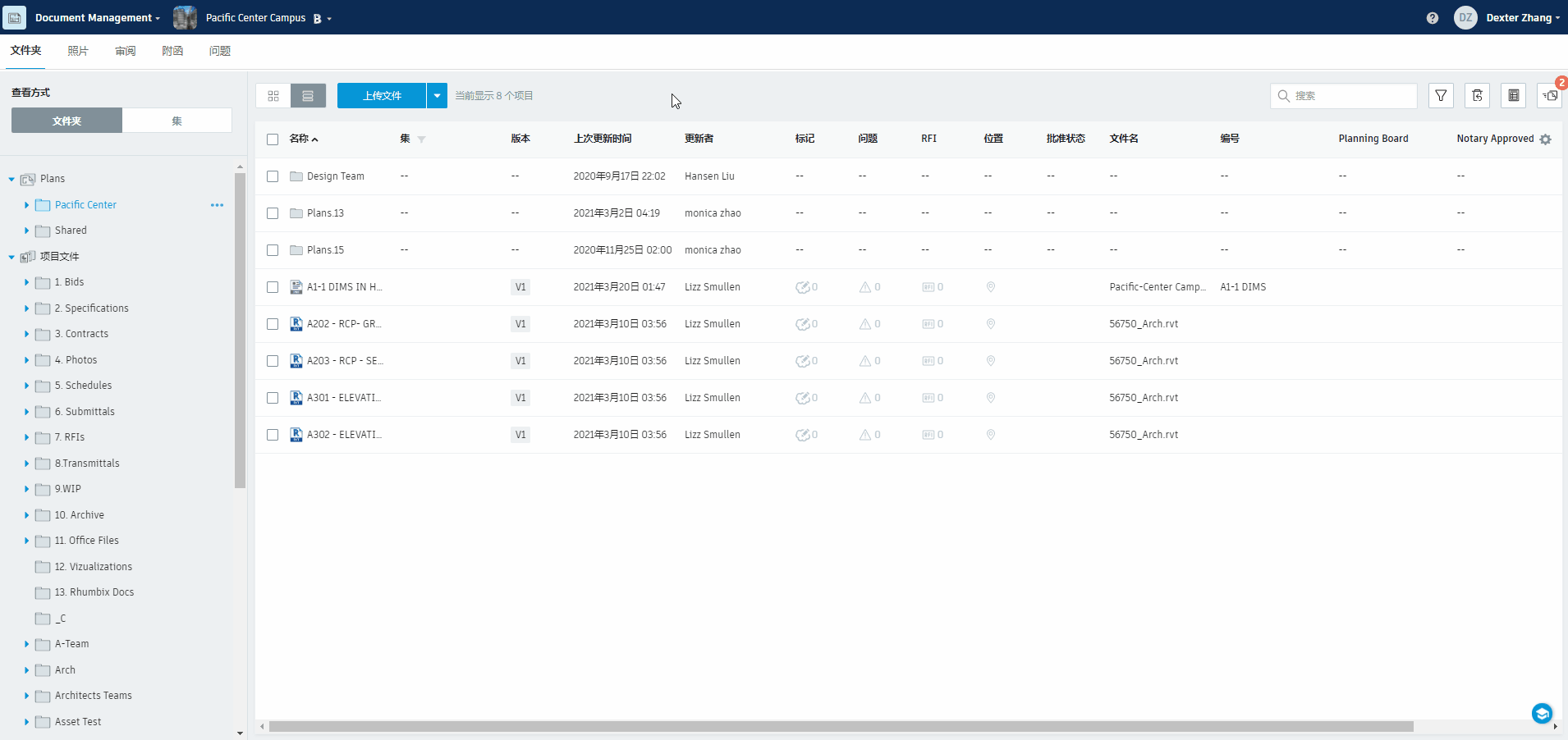 将 RVT、DWG、DWF 二维图纸以及包含详图索引的光栅或矢量 PDF 上传到“平面图”或“施工图”文件夹时,系统会自动创建超链接。
