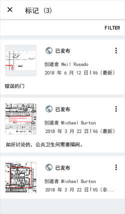 创建、设计、查看、编辑和管理二维文档和三维模型中的标记。有关使用 Android 应用程序的“标记”功能的详细信息,请参见 移动功能。