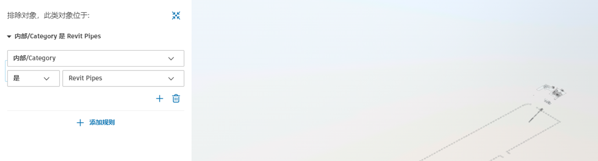 选定的模型将加载到模型查看器中。您可以调查这些模型并查找相关特性,然后应用规则来排除对象。