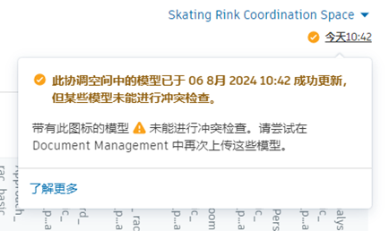 还有多种原因无法通过减少模型数量或大小或更改协作空间设置来解决。如果上述疑难解答步骤不起作用,或者“冲突”选项卡上一直显示旋转图标,支持团队可以调查并帮助解决相关错误。