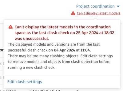如果最新的冲突检查不成功,Model Coordination 将通过协调空间拾取器显示两条错误消息之一: