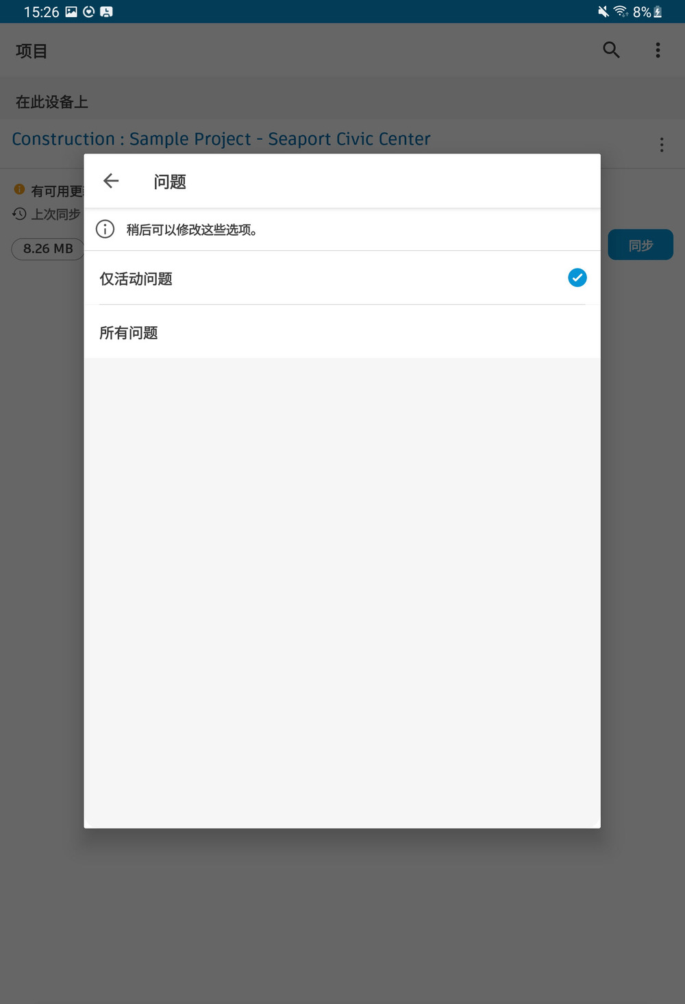 如果您点击“所有问题”选项,您的设备将下载大量数据,这可能会导致性能降低并增加存储使用量。