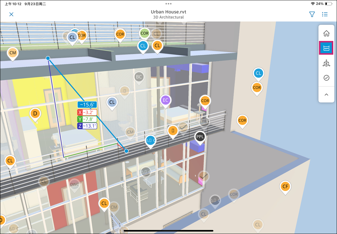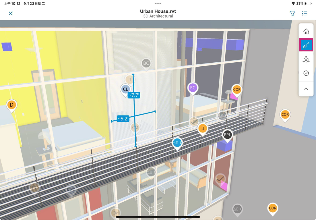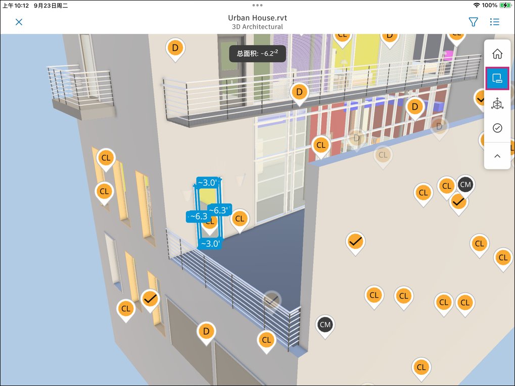 有关测量工具的详细信息,请参见在移动设备上的查看器中测量三维模型。