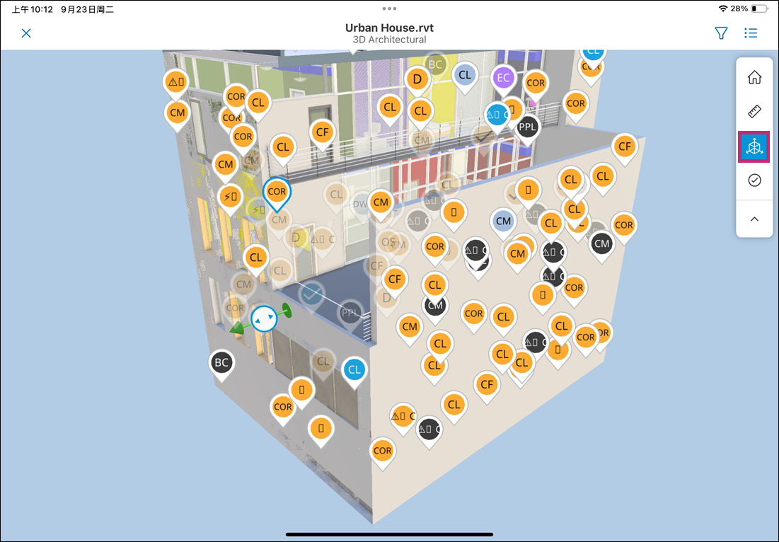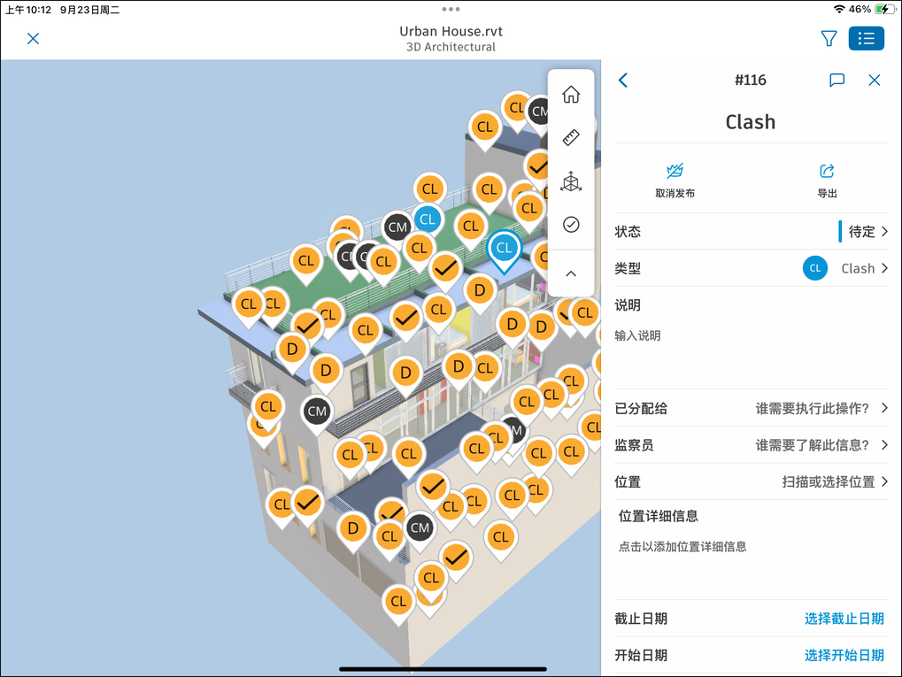 问题图钉直观地标记了三维模型上已放置问题的确切位置,有助于您在上下文中快速识别和访问问题详细信息。