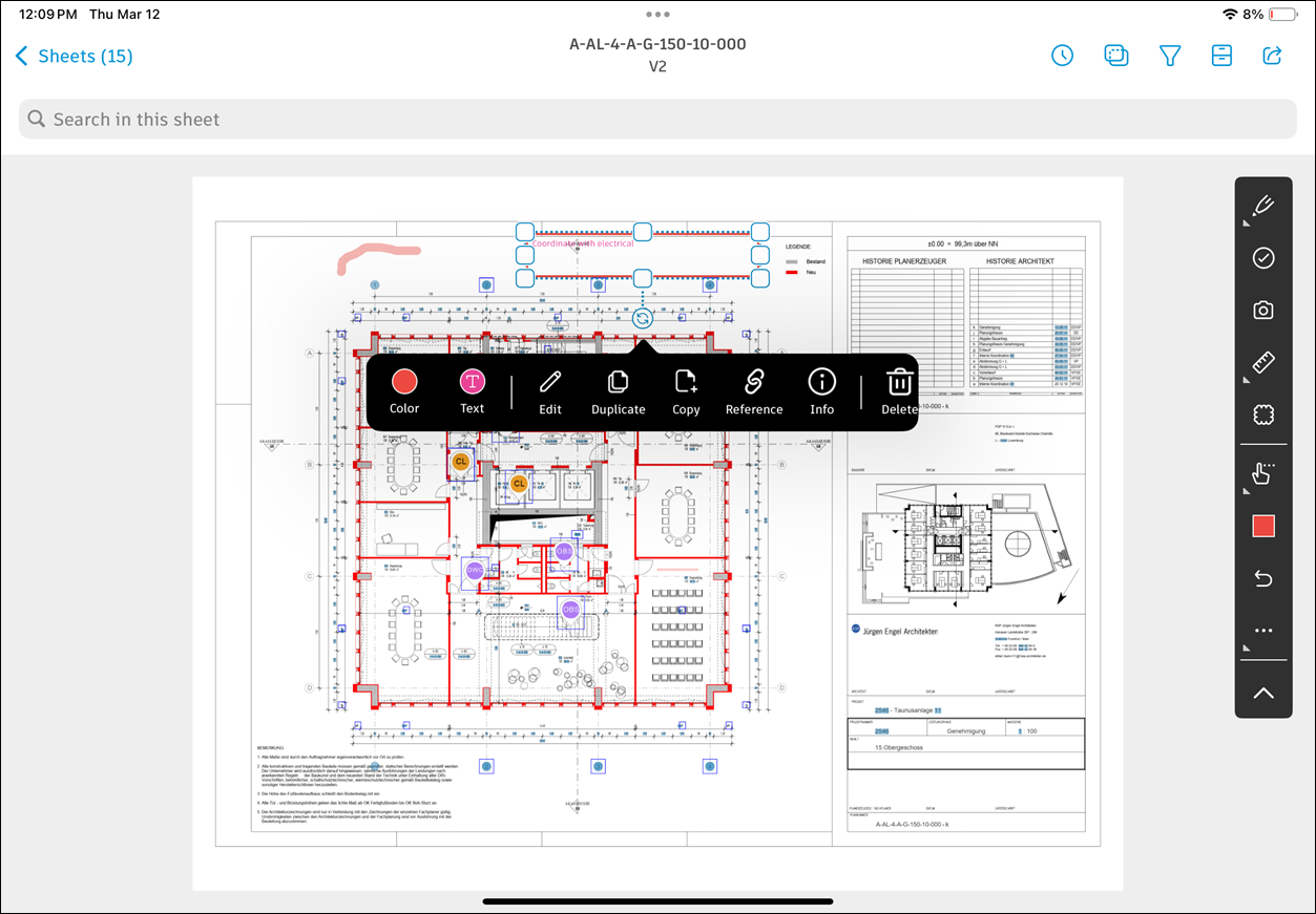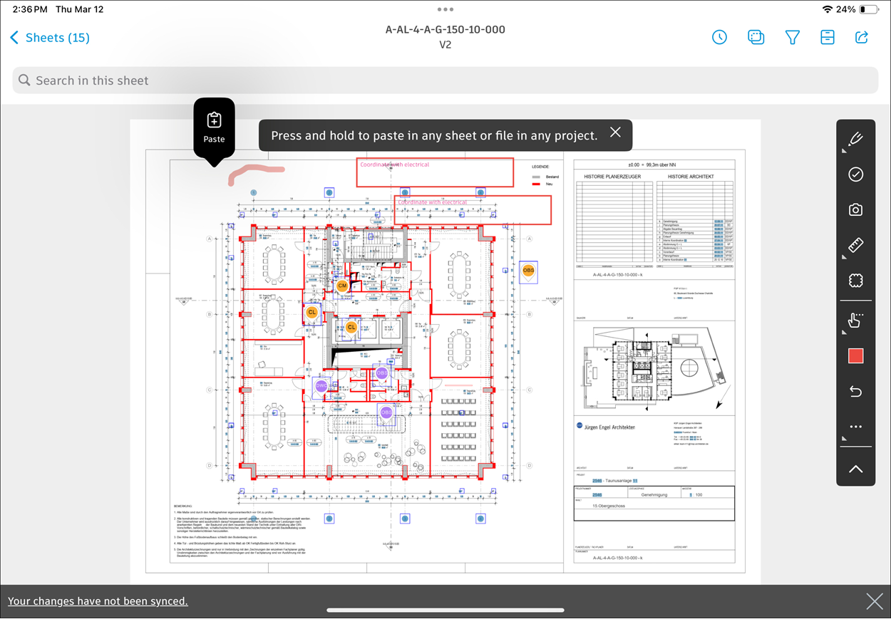 有关详细信息,请参见 Autodesk Forma 移动应用程序上的图纸和 Autodesk Forma 移动应用程序上的文件。