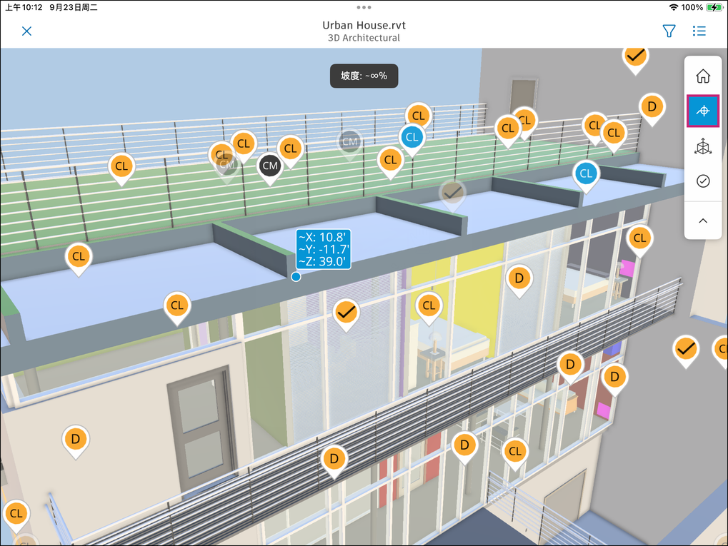 您可以直接在 iOS 上的 Autodesk Forma 移动应用程序查看器中查看、编辑和管理问题。这样可让您使用放置在二维文件、图纸和三维模型上的问题,从而帮助您在上下文中直观地查看和解决问题。使用查看器工具导航、测量、创建标记,以及更高效地与团队协作。
