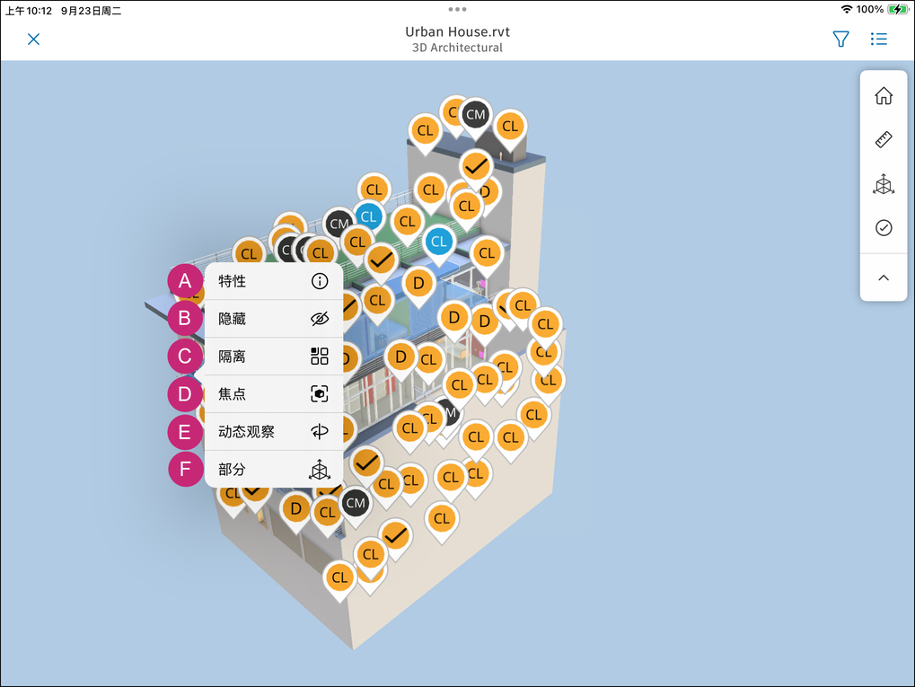 C:隔离:点击即可隔离选定对象,同时隐藏模型中的所有其他元素。这使您可以专注于特定对象,而不会分心。