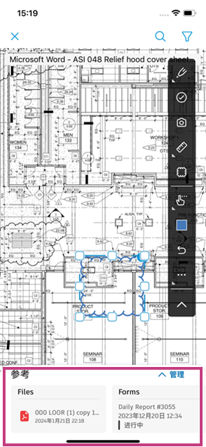 在 Forma mobile app 中,您可以在标记上添加对其他图纸、文件、RFI、表单、提交资料和资产的参考。