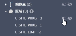 提示:您可以选择任何放坡对象旁边的眼睛图标以在可视化显示中暂时隐藏它们。这有助于识别和定位紧靠在一起或分层堆叠的对象。