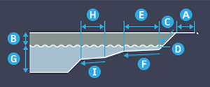 I. 水上台阶宽度。指定湿塘中水上台阶的宽度。如果没有水上台阶,则将值设置为零 (0)。
