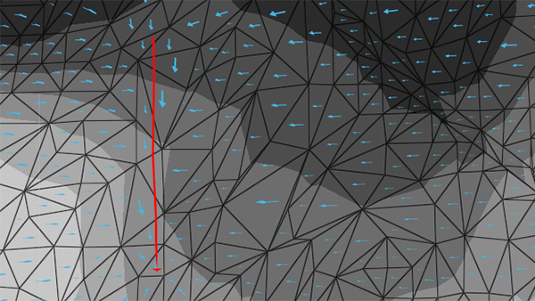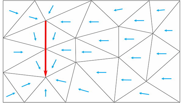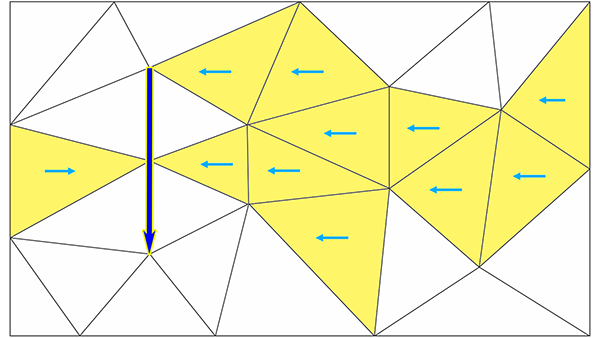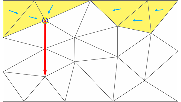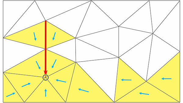 质心与排水管线相邻或在排水管线前面的任何三角形都将向低洼点倾斜。