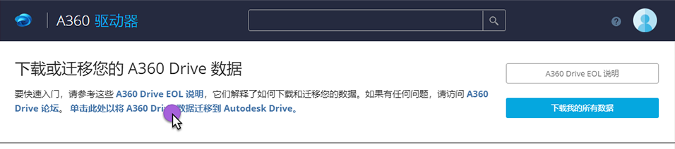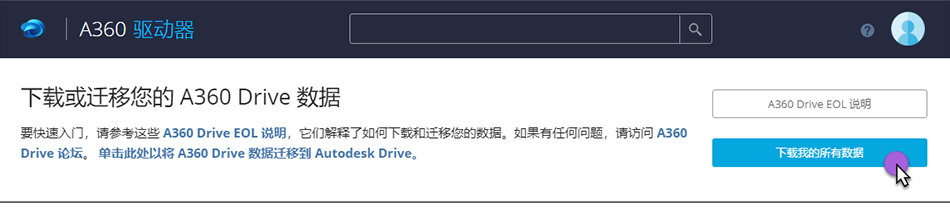 通过 AutoCAD Web 和 Mobile 应用程序上载到 A360 Drive 的文件不会移植到 Autodesk Drive。如果您对这些文件有疑问,请联系 Autodesk 支持。