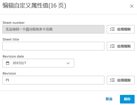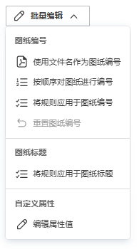 单击“批量编辑”以查看用于批量编辑选定页面的图纸编号、图纸标题和自定义属性的选项。